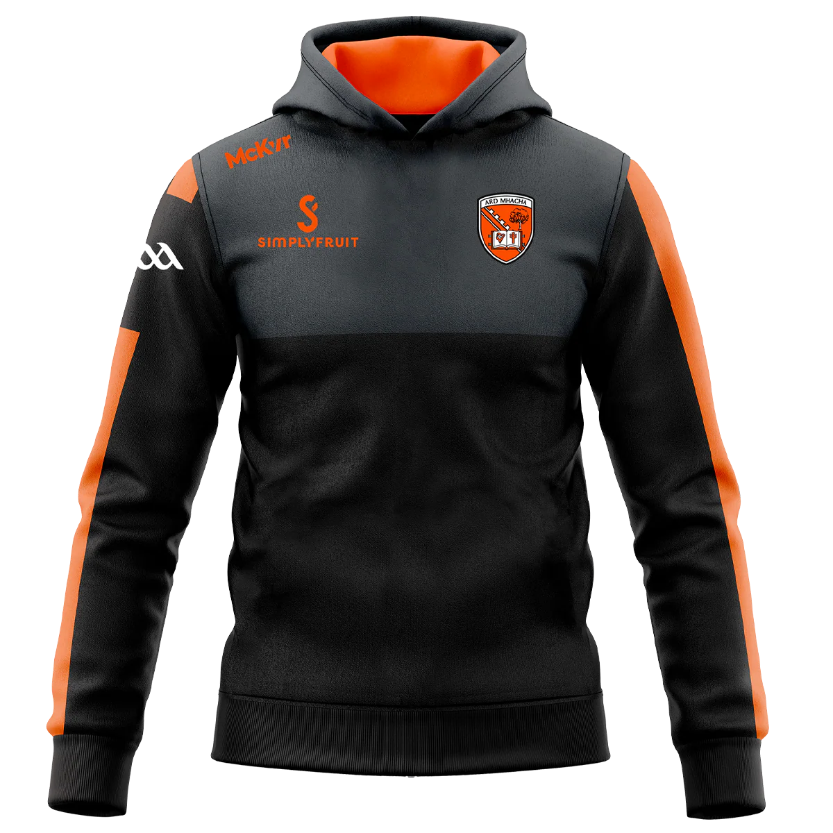 Upgrade your game with the Armagh GAA Edge Hoodie. This hoodie offers a comfortable and stylish design in black and charcoal. Perfect for showing off your support while staying warm and comfortable during matches.