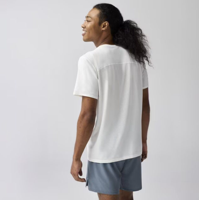 You can outrun the heat in this short sleeve running top. It has sun protection, stretch fabric designed to dry fast, and it's stink-proof (really!).